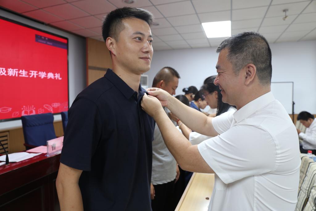 开学典礼上,师生们共同观看了习近平总书记考察公司四周年公司改革发展宣传片《足迹》,公司领导班子和班主任为员工代表们佩戴了校徽,带领同学们参观了校园。