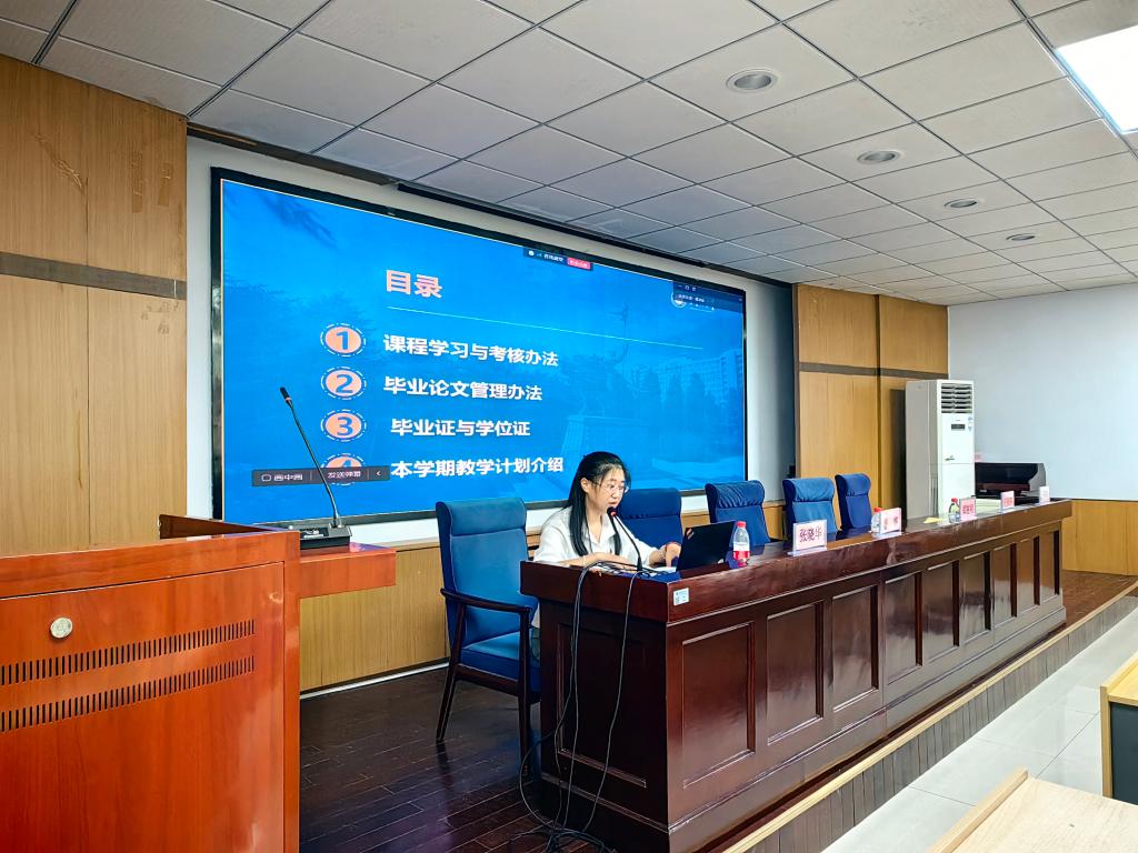 典礼结束后,张晓华老师为同学们进行了专题培训,从培养方案、学期安排、课程学习、平台使用、毕业论文、学位申请等方面对员工进行了入学教育。