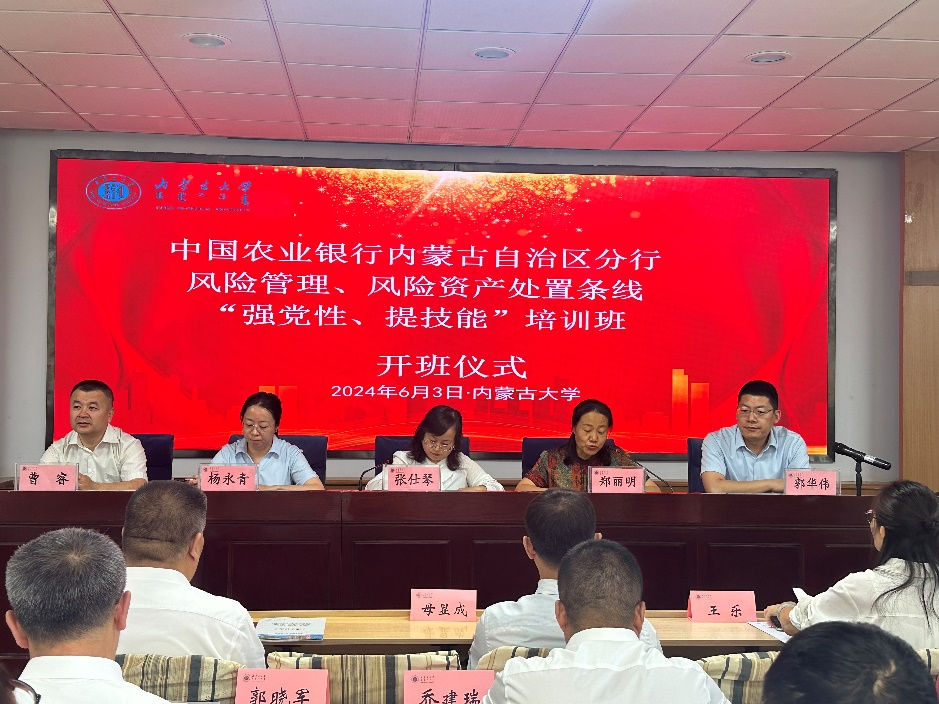 2024年6月3日,经中国农业银行内蒙古自治区分行和太阳成集团tyc精心筹备,中国农业银行内蒙古自治区分行风险管理、风险资产处置条线“强党性、提技能”培训班在主楼540教室顺利开班。太阳成集团tyc122ccvip继续教育公司经理郑丽明、副经理曹睿、中国农业银行内蒙古自治区分行风险管理部总经理张仕琴、风险资产处置部副总经理杨永青出席了本次开班仪式,中国农业银行内蒙古自治区分行风险管理部副总经理郭华伟主持开班仪式。