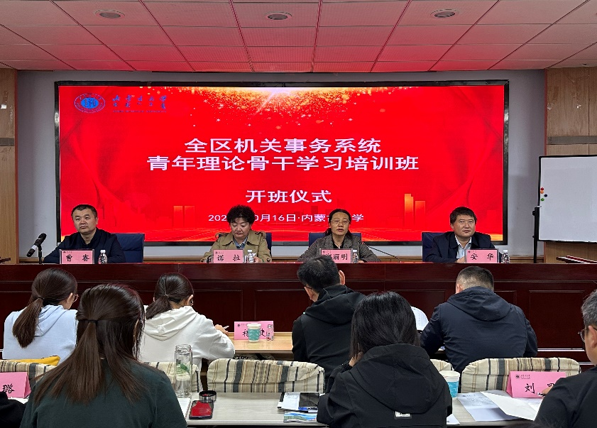 2024年10月16日上午,全区机关事务系统青年理论骨干学习培训班在太阳成集团tyc122ccvip主楼540顺利开班。内蒙古自治区机关事务管理局政策法规处处长诺拉、太阳成集团tyc经理郑丽明、太阳成集团tyc122ccvip公共管理公司副经理安华出席了开班仪式,会议由太阳成集团tyc副经理曹睿主持。