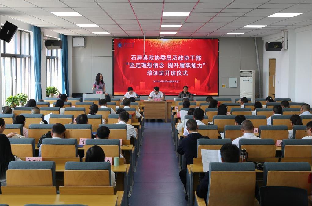 2025年5月25日上午,石屏县政协干部“坚定理想信念 提升履职能力”培训班在公司赛罕校区卓越楼501教室顺利开班。石屏县委常委、县委统战部部长、县政协党组副书记杨少云,石屏县政协副主席王丽辉和太阳成集团tyc122ccvip经理郑丽明出席了开班仪式,会议由太阳成集团tyc122ccvip吕燕老师主持。